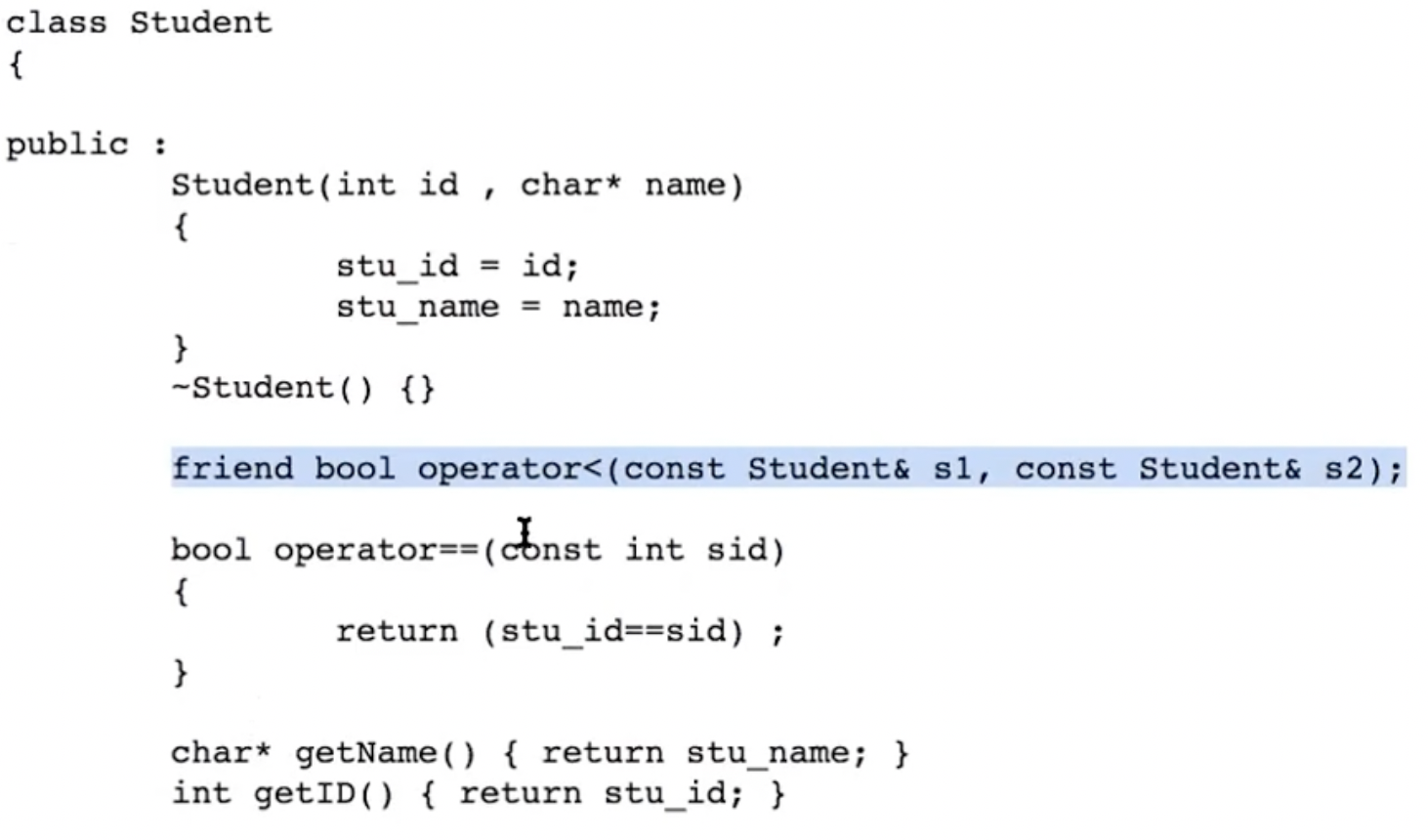 - 아래 코드처럼 sort가 동작하도록 하려면 student class에 <연산자 오버로딩을 해준다.