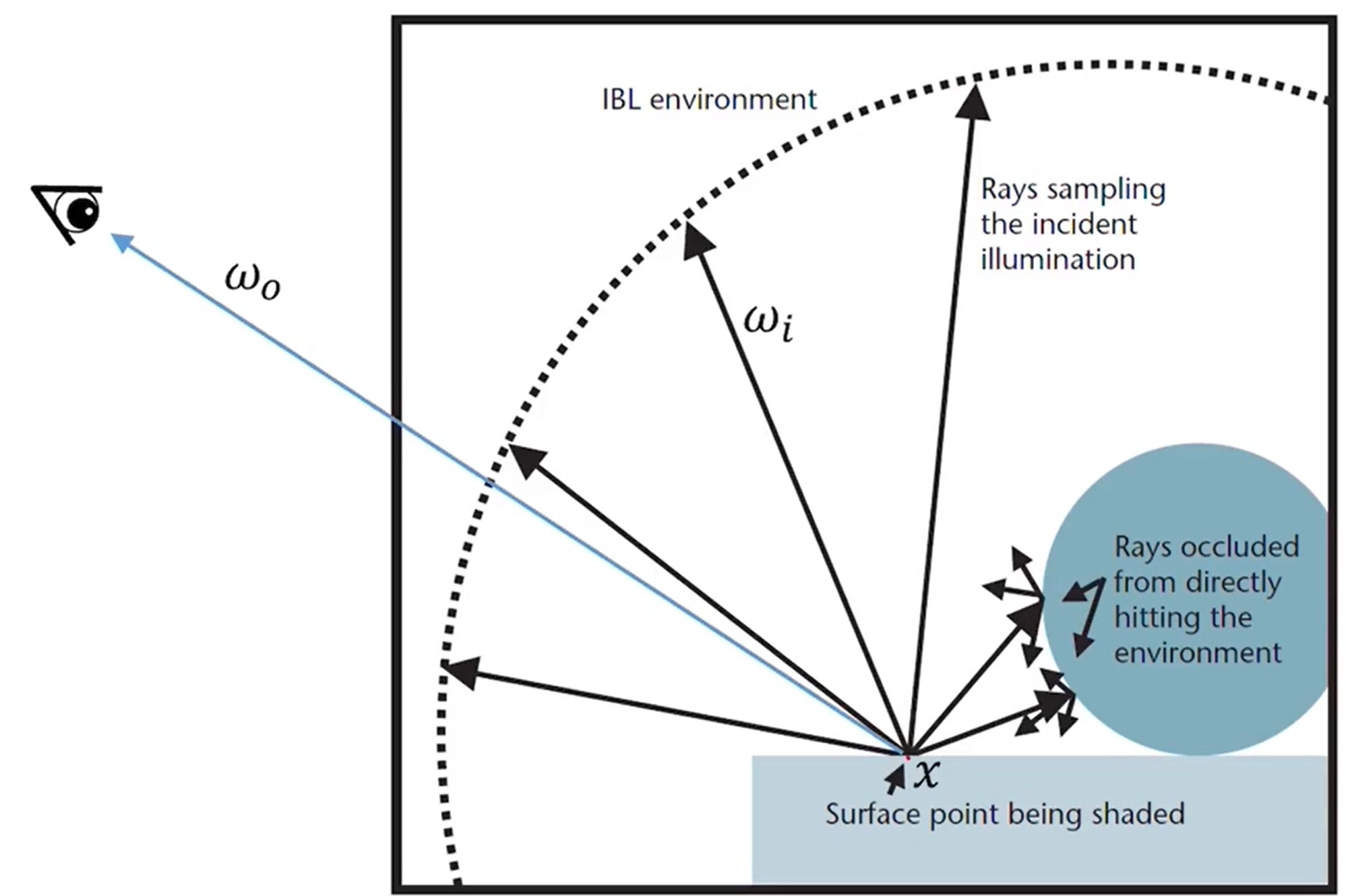 - 그래서 실제로 계산할 때 environment map을 가지고 몇개의 sampling을 통해 irradiance를 계산한다.