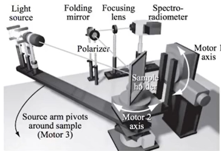 - 측정을 위한 장비가 필요하다. 위도 경도를 이동해가며 point light를 쏘는 장치(wi)로 빛을 쏜다. wr을 기록하기 위해서 눈의 위치에 해당하는 장치가 있다. 반사되어 들어오는 빛의 양을 측정한다.