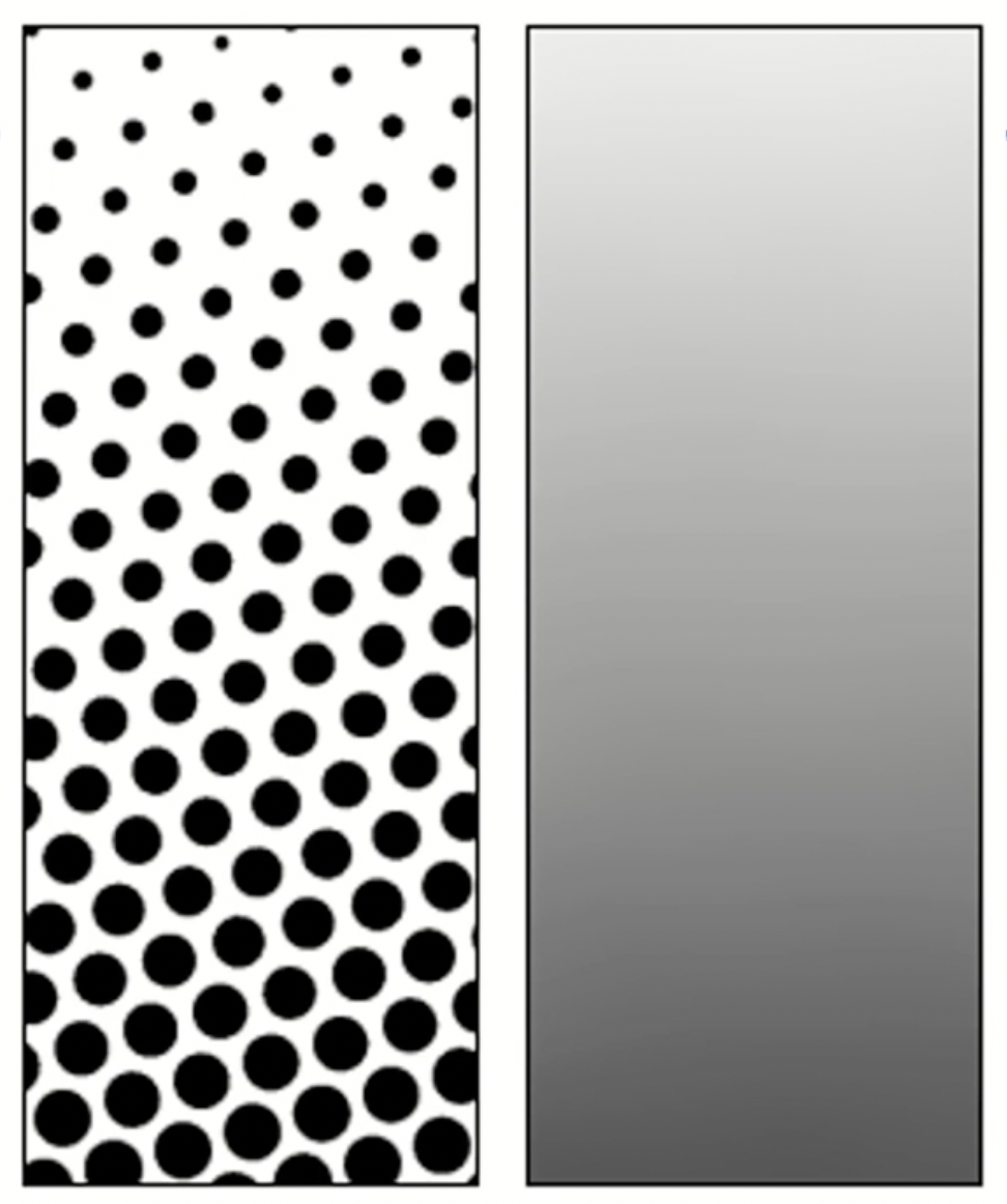 - 예를들면 같은 색이지만 작은 점을 찍으면 밝아보이고, 큰 점을 찍으면 어두위 보인다.
