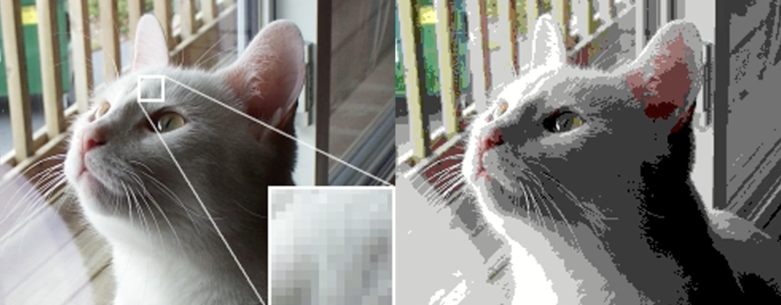 - 예를들어 어떤 픽셀이 0, 0.2, 0.4, ..., 1.0. 6단계만 표현할 수 있다고 하자. 그런데 오리지널 컬러가 0.7이면 아쉽지만 0.8로 픽셀은 표현을 한다.