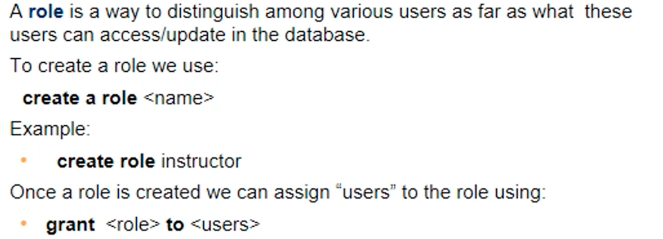 - role이라는 이름으로 역할을 생성하고 role에 grant로 권한을 부여해둔다.