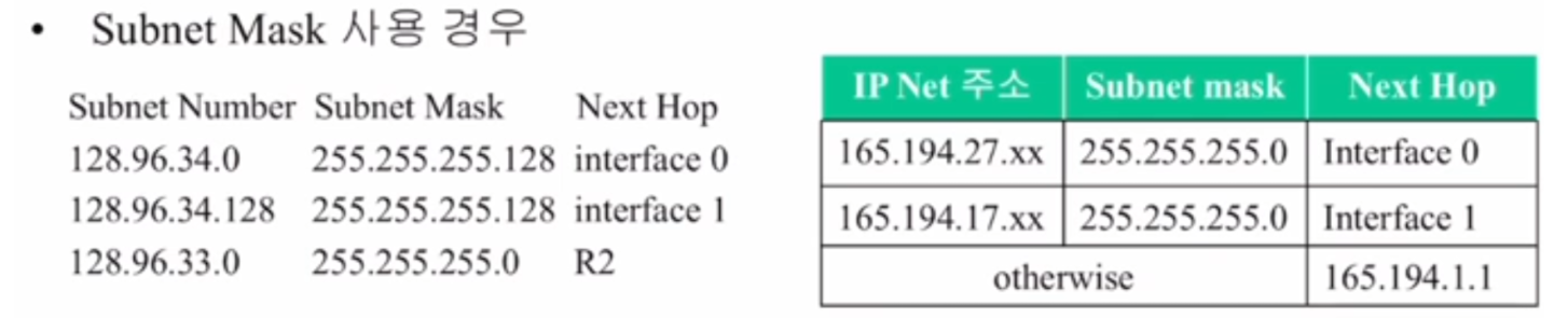 - 서브넷 마스크로 가변적으로 네트워크 주소를 쪼갰기 때문에 새로운 subnetted network 주소와 서브넷 마스크를 기록할 필요가 생겼다.