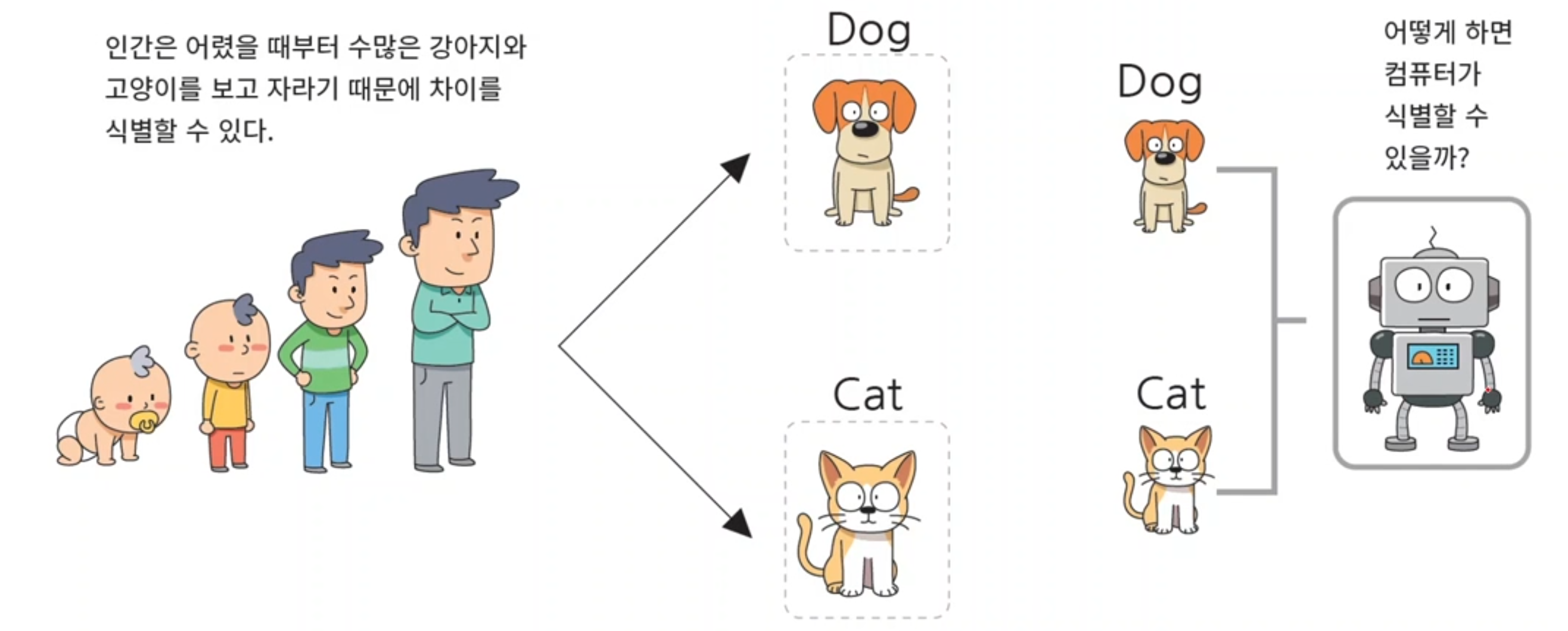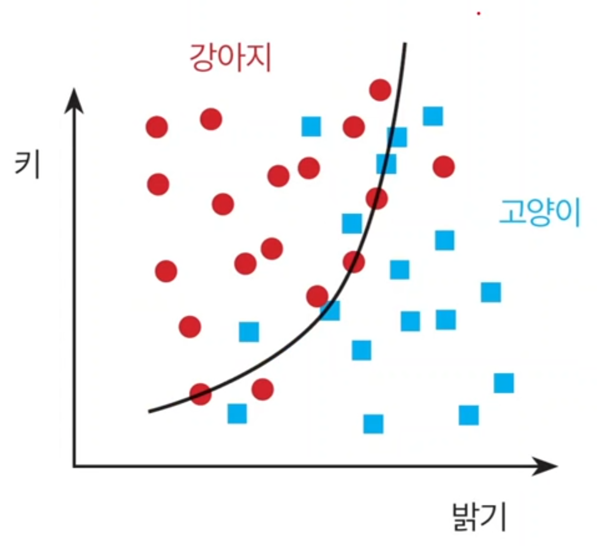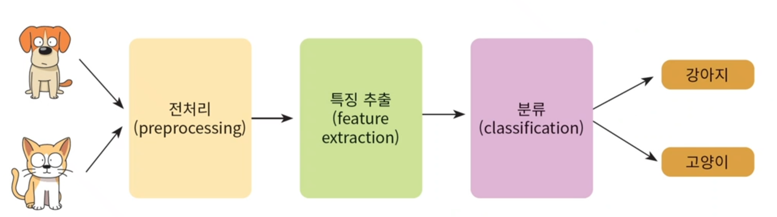- 즉 개와 고양이를 구분지을 수 있는 적절한 특징을 가지고 분류 기준을 세우는 것이다.