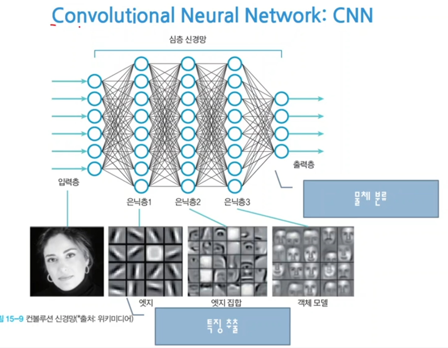 - 사진이 입력으로 들어가면 은닉층에서 알아서 특징들을 추출한다.