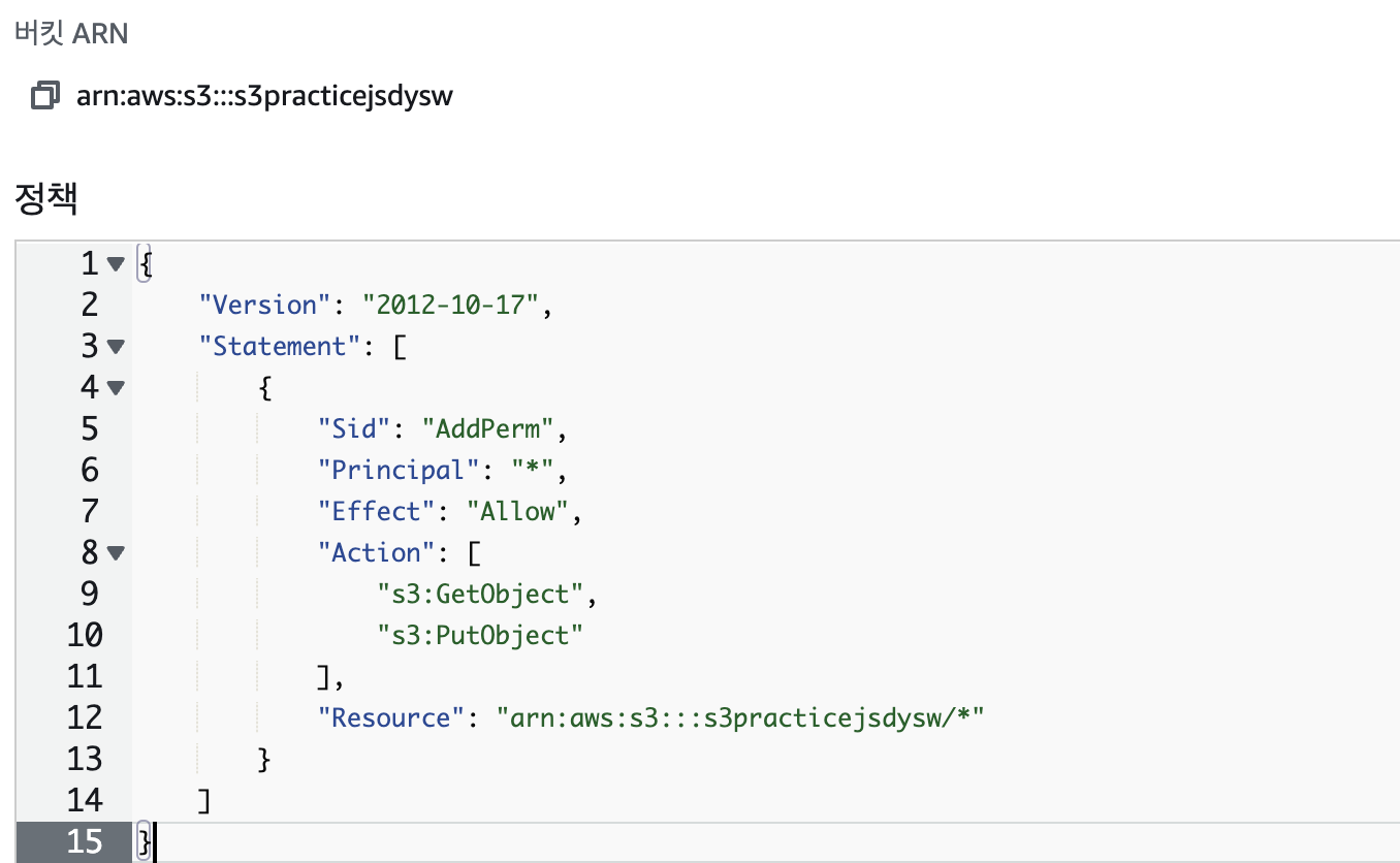 - GetObject는 s3로부터 데이터를 가져오는 권한, PutObject는 s3에 데이터를 넣는 권한을 의미한다.