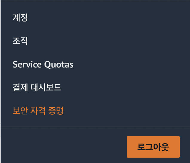 3. 웹에서 s3에 파일을 업로드할 수 있도록 AWS 엑세스 키를 발급받아야 한다.