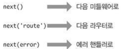 - next에 'route'를 인자로 넣어주면 다음 라우터로 이동한다.