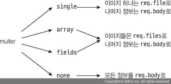 - 특수한 경우지만, 파일을 업로드하지 않고도 멀티파트 형식으로 업로드하는 경우 none 미들웨어를 사용한다.