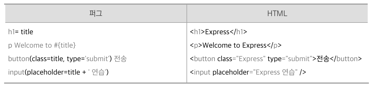 - index.pug를 HTML로 랜더링할때 index.pug의 title이라는 변수에 'Express'를 집어넣을 수 있다.