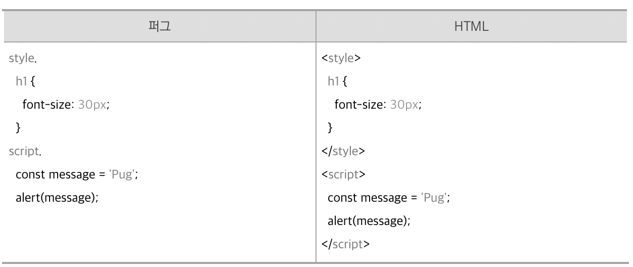 - 퍼그는 변수의 특수 문자를 HTML엔티티로 바꾼다.