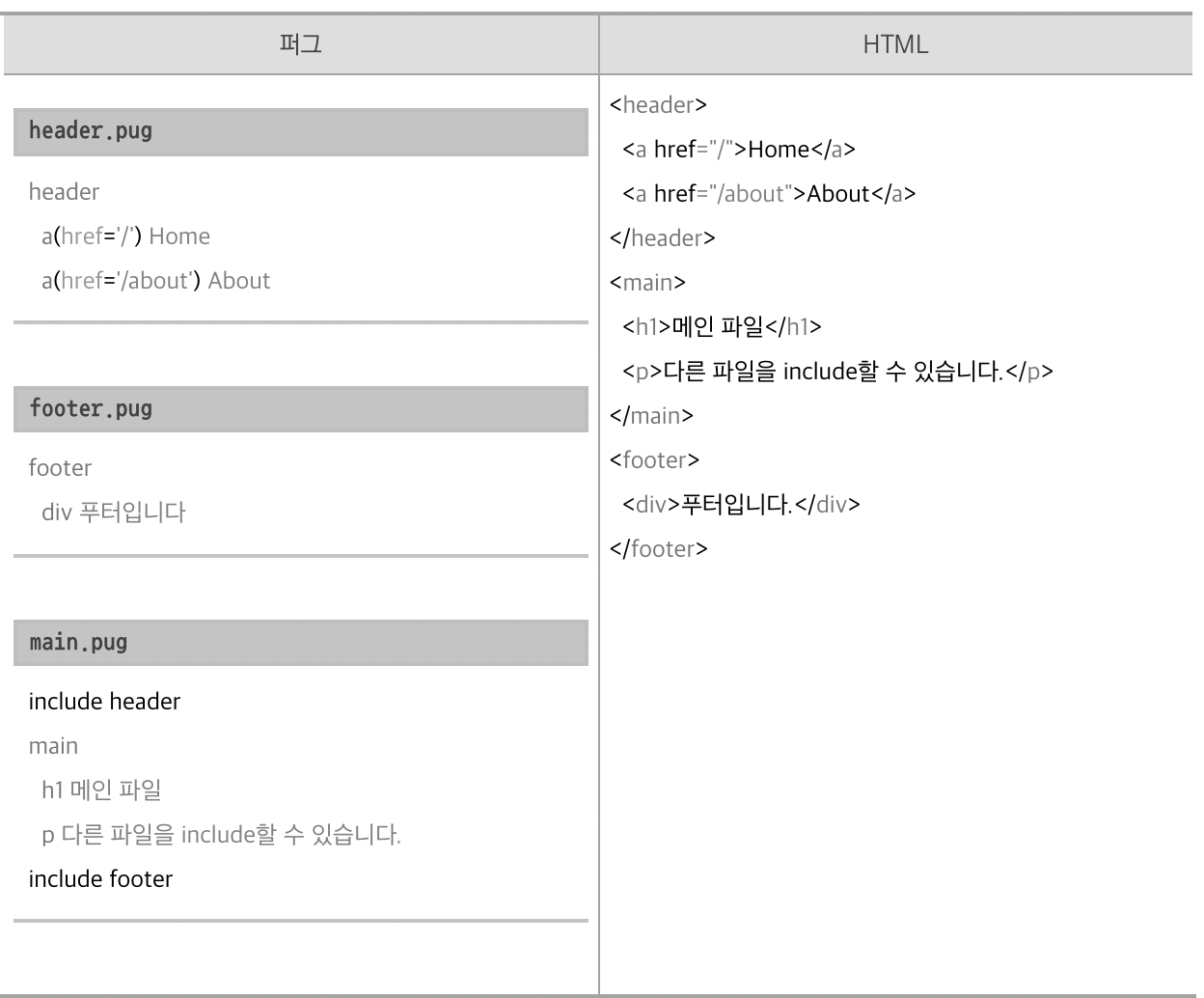 - 다른 .pug, .html파일을 넣을 수 있다.