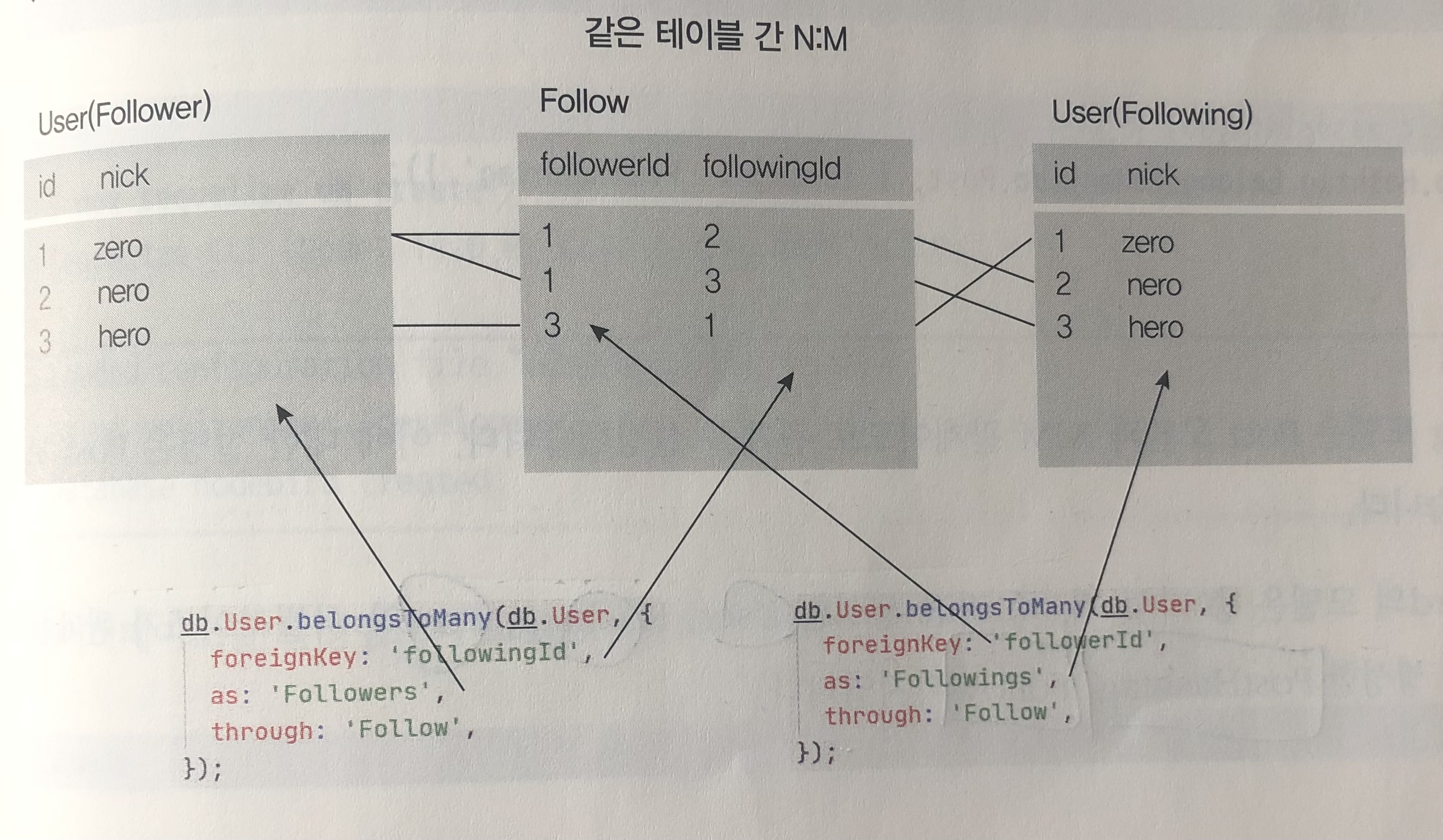 - Followers(User)는 Follow테이블의 followingId를보고 Following(User) 테이블을 참조한다.