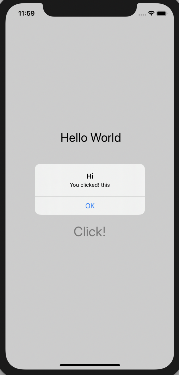 let alert = UIAlertController(title: "Hi", message: "You clicked! this", preferredStyle: .alert)