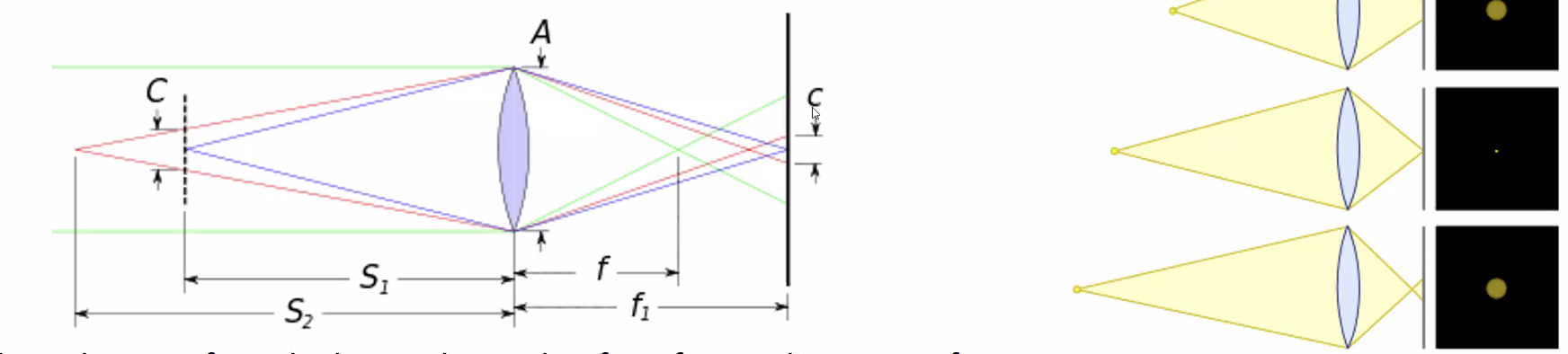 - 렌즈를 거친 빛들이 정확하게 한 곳으로 맺히지 못하고 만드는 spot을 circle of confusion이라고 한다.