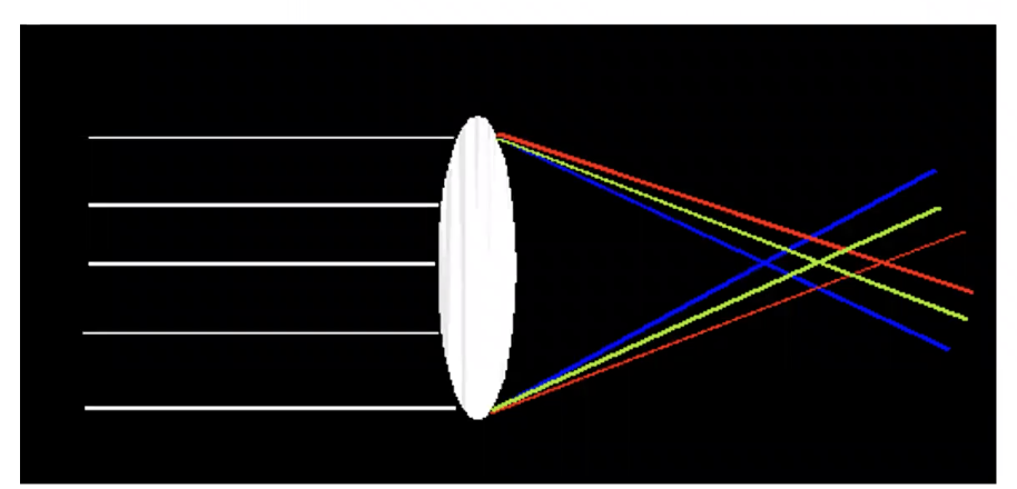 - 참고로 빛의 파장에 따라서 렌즈를 통과할때 굴절 정도가 달라서 색수차가 생길 수 있다. 즉 초점이 잘 안 맺히는 것이다.