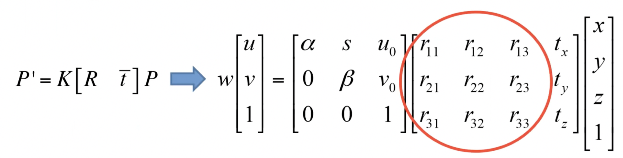 - Rotation을 수행하지 않는다면 R은 I가 된다. 마찬가지로 tranlation도 없다면 0이다. 이 두 행렬을 붙여서 M이 만들어진다.