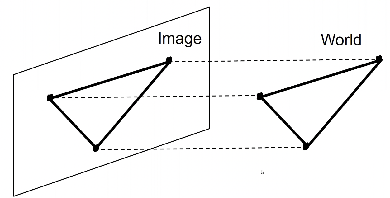 - 3차원 물체를 2D로 사영시킬때 차원이 축소된다. 카메라 좌표를 옮길때마다 3차원 물체를 다각도에서 2D화면으로 투영시킬 수 있다.