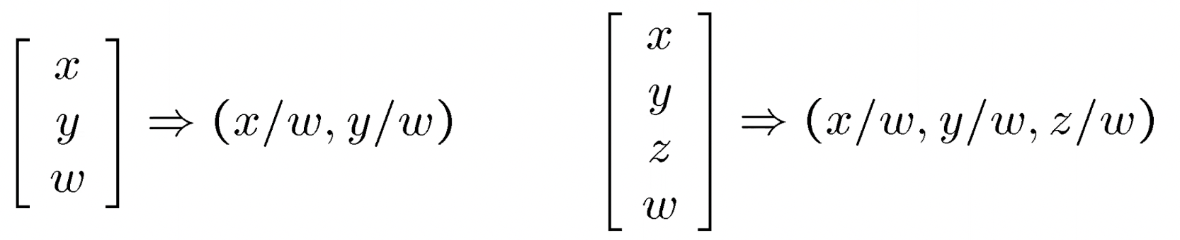 - conversion을 할때 우리는 homogeneous coordinates를 사용한다.