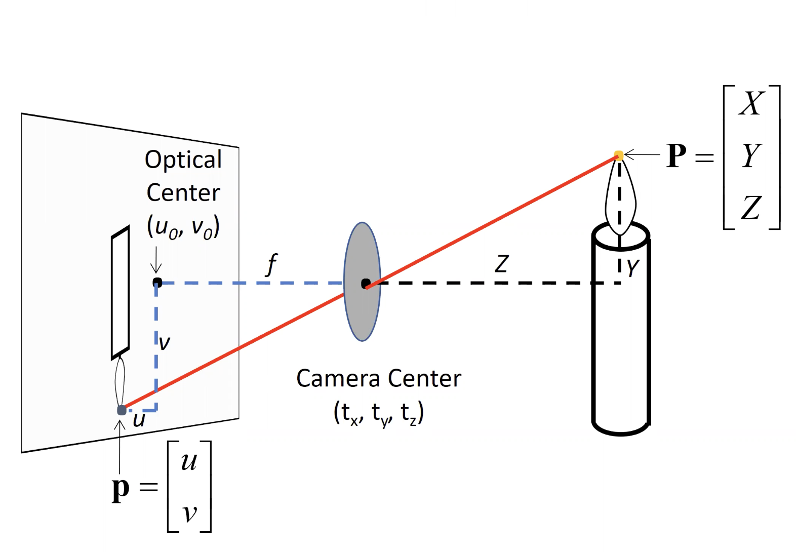 - 사영할 2D이미지의 중심이 0,0이 아니고 u, v일때,