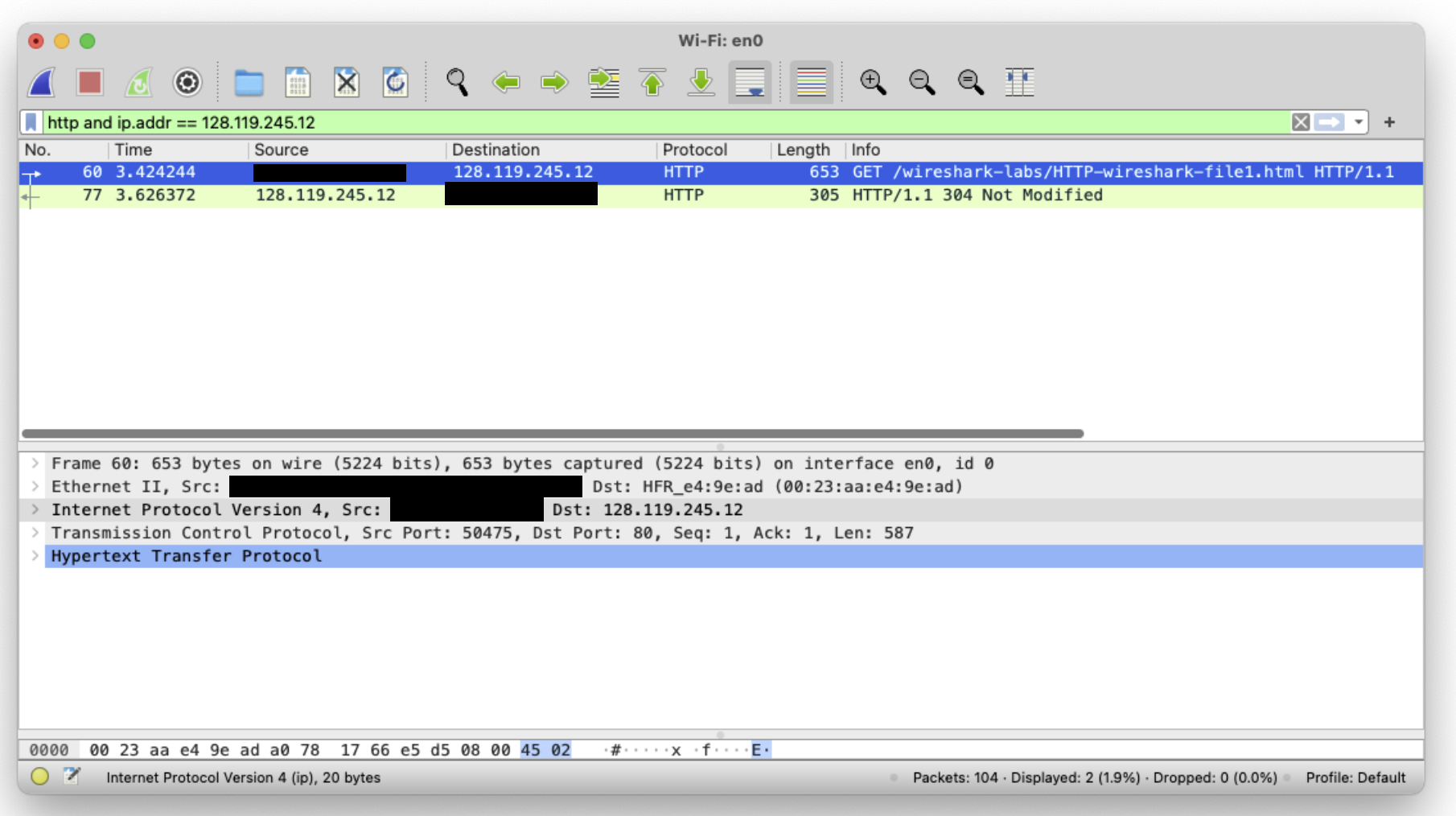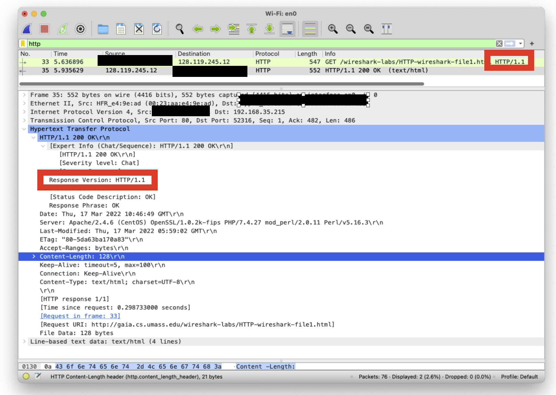 http://gaia.cs.umass.edu/wireshark-labs/HTTP-wireshark-file2.html 에 첫번째로 접속한다.