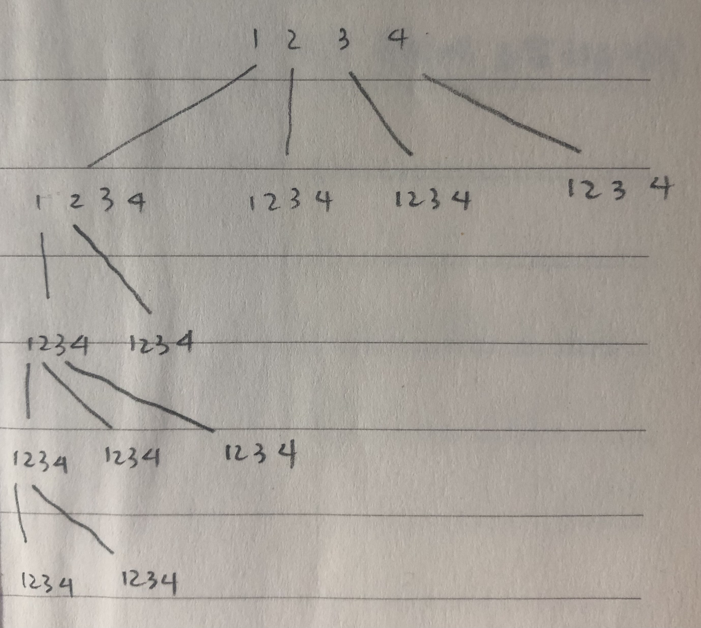 - 1 2 _ _ 의 경우를 다 파악했다면 13 _ _ 의 탐색이 수행될 것이다. 근데 2를 계속 방문했다고 체크해두면 1 3 2 4 등의 경로는 탐색하지 못할 것이다.