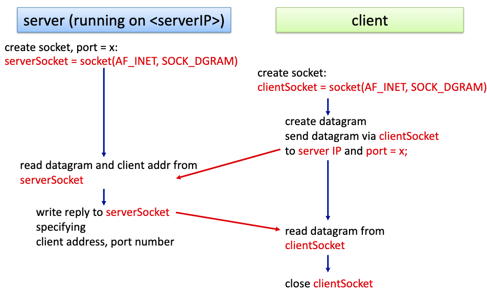 1. 서버와 클라이언트는 가장 먼저 소켓을 생성한다. (AF_INET은 ipv4, sock_dgram은 udp)