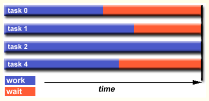 load balancing이 잘 되지 않으면 먼저 일이 끝난 프로세서가 synchronozation을 위해 아직 작업중인 프로세스를 기다리는 경우가 생길수도 있다.