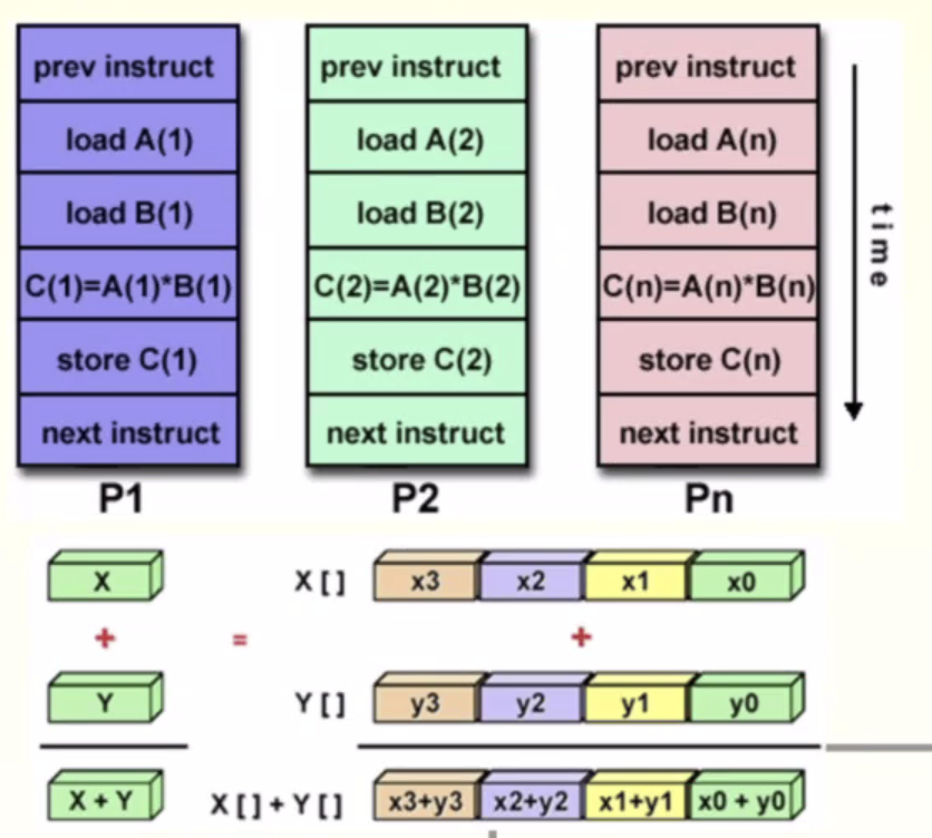 모든 프로세스 유닛이 clock cycle동안 (다른 데이터에 대해서) 동일한 instruction을 수행한다.