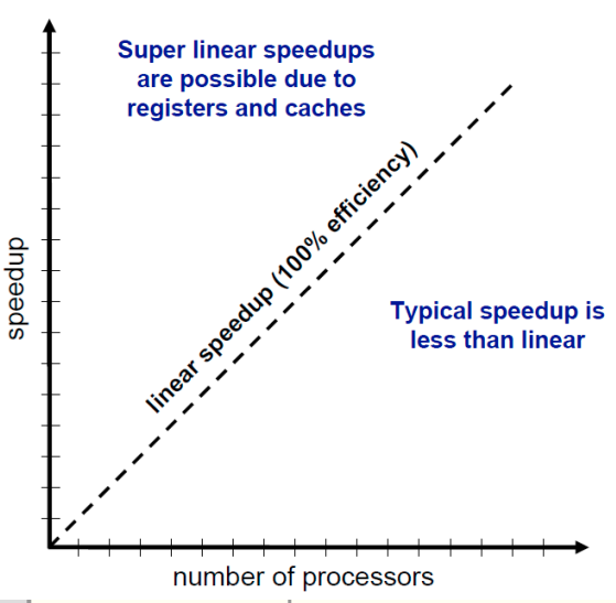 resource가 추가될때마다 speedup의 정도를 말한다. 이상적으로 linear line을 그린다. 실제로는 Linear speedup보다 기울기가 낮은 그래프로 나타난다.