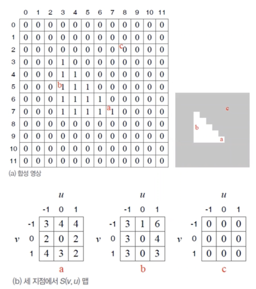 - 마스크를 u,v만큼 shift한 결과와 원본 마스크의 차이를 구한다.