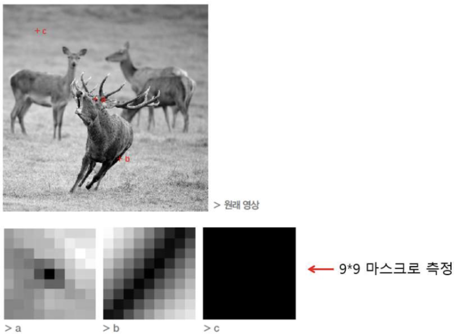 - 이렇게 corner라고 판정하자는 관점을 Moravec이라는 분이 초창기에 제안했다.