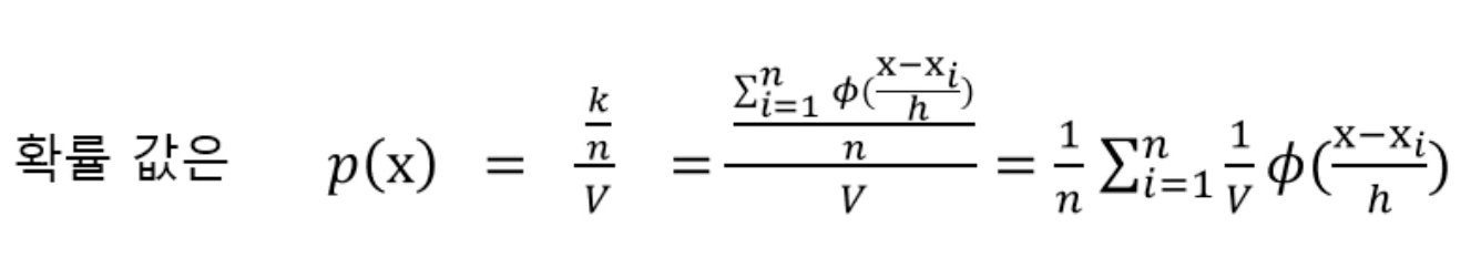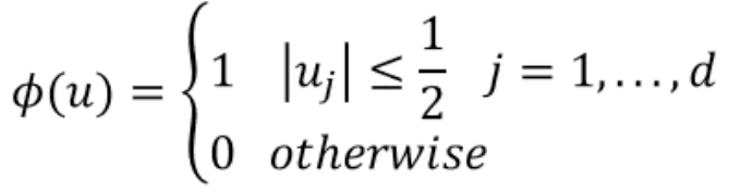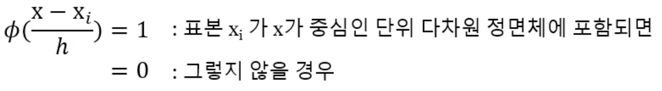 - x를 중심으로 하는 정면체에 표본 xi가 속하면 1이 된다.