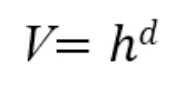 - 확률 추정 공간 R은 피쳐의 수에 따라 d-차원 정면체가 될 수 있다. 한변의 길이가 h라면 V는 위와 같다.