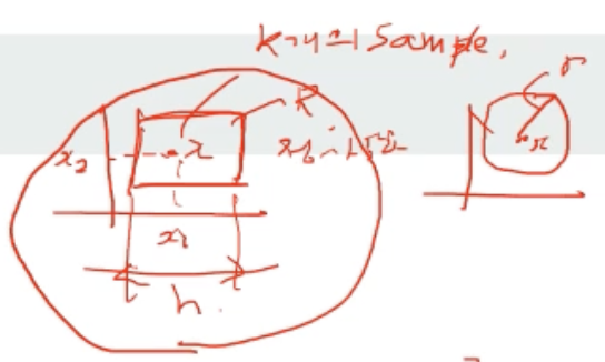 - 모든 n개의 샘플에 대해서 x를 중심으로 하는 다면체에 xi가 속하면 k는 하나씩 증가한다.