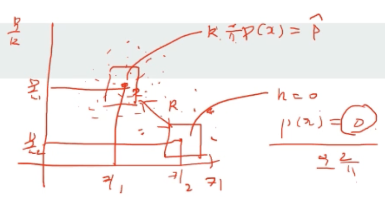 - 잡은 region 밖에 아웃라이어가 하나 있는데 자기 영역에 포함된 K가 0이라는 이유로 추정한 p = 0이 된다.