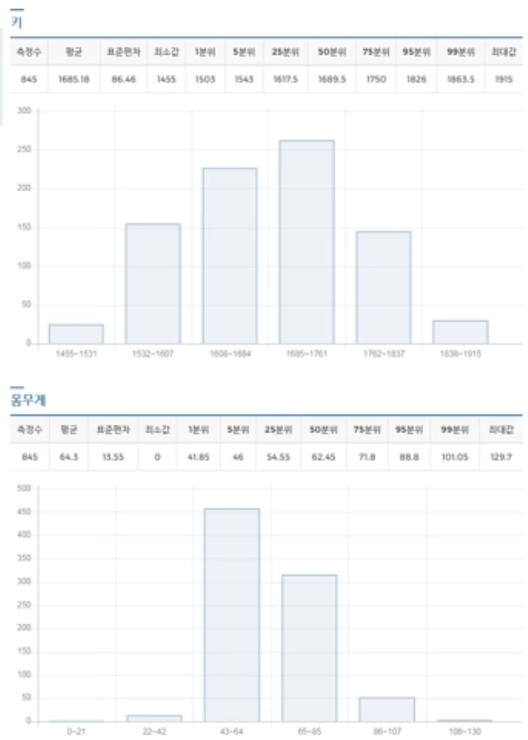 - 1cm, 1kg단위로 세부 구간들을 나눈다고 하자. (ex. [40,41), [41,42))
