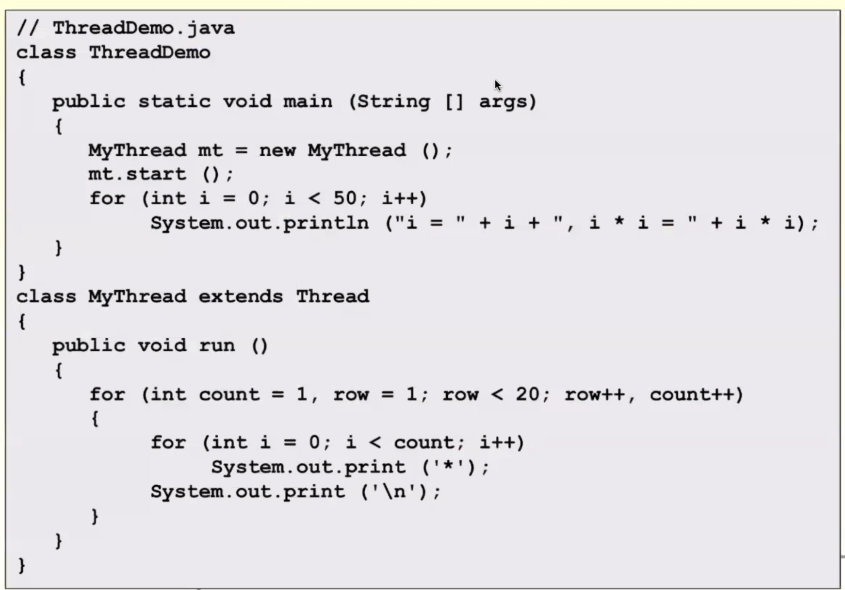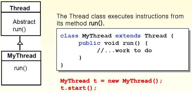 mt.start()가 실행되면 MyThread에서 정의한 run()동작을 쓰레드 mt가 수행한다.