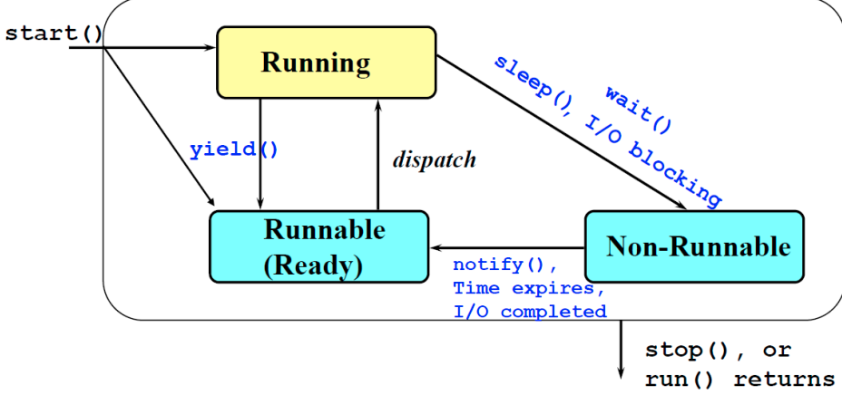 runnable은 쓰레드들이 cpu 할당(dispatch)을 기다리는 상태이다.