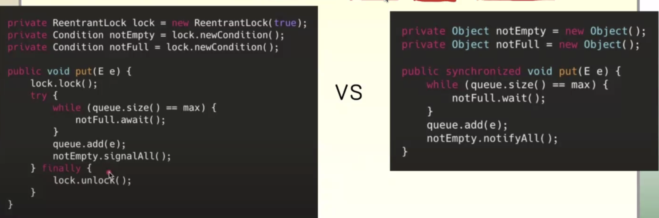 synchronized 말고 lock을 사용할 수도 있다. 기능은 동일하다. await(), signal(), signalAll()을 사용한다.