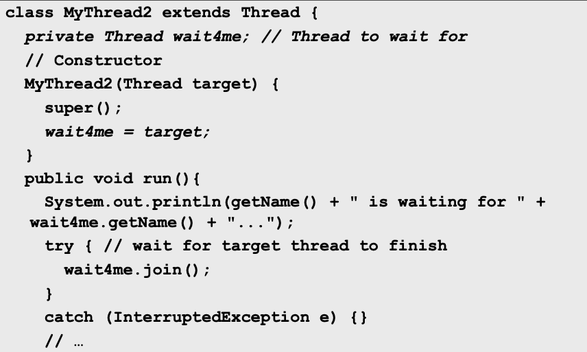 MyThread2(Thread_a)생성자로 Thread_b를 만들 때 Thread_a를 인자로 넘겨주면 MyThread2(Thread_b)에서 wait4me라는 이름으로 Thread_a를 저장해둔다.