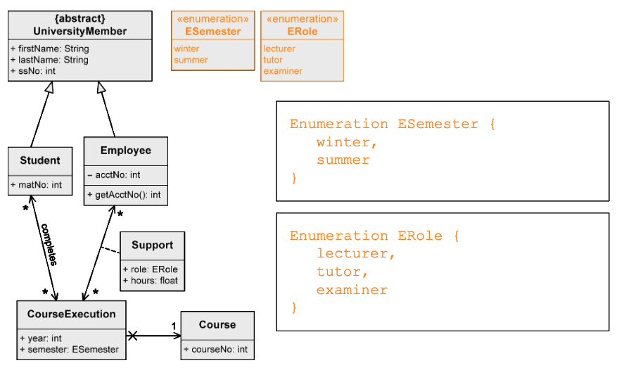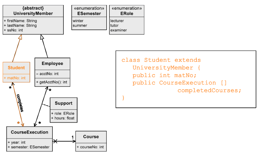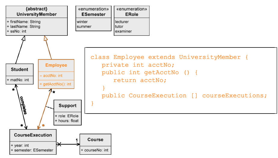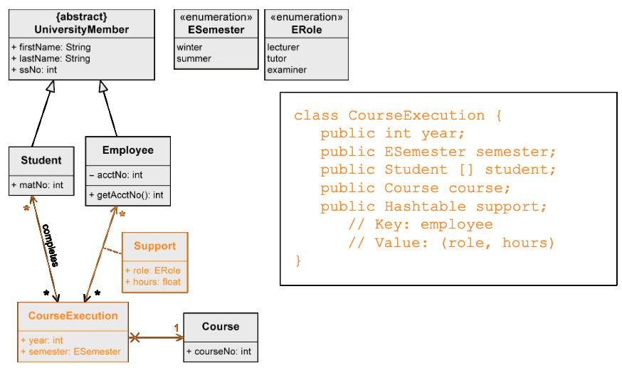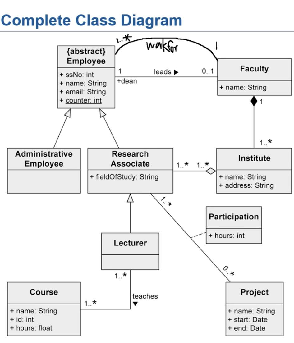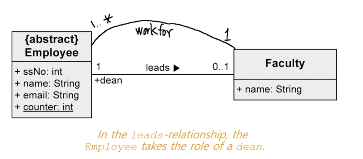 - 관점에 따라서는 lecturer라는 독립된 class를 만들지 않고 역할을 부여하는 방식으로 설계할 수도 있다.