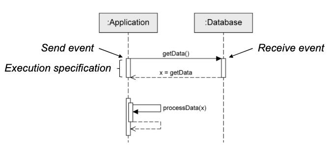 - actor와 시스템, 시스템을 구성하는 서로 다른 파트들 간의 interaction을 묘사한다. 혹은 여러 process간의 소통도 묘사할 수 있을 것이다.