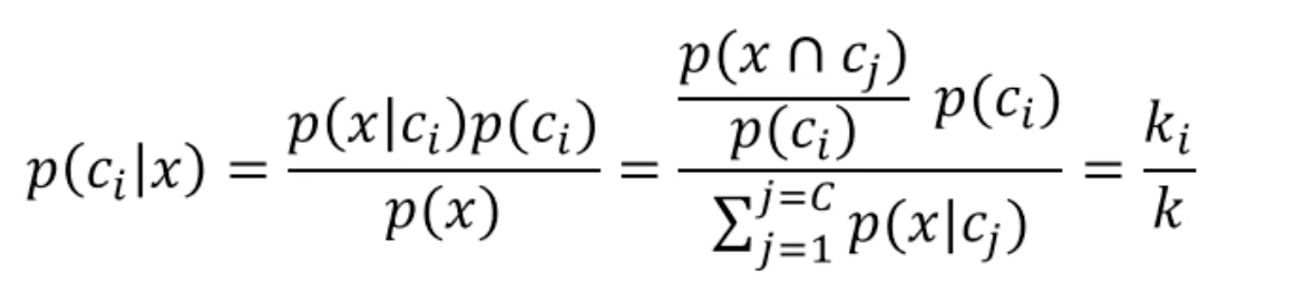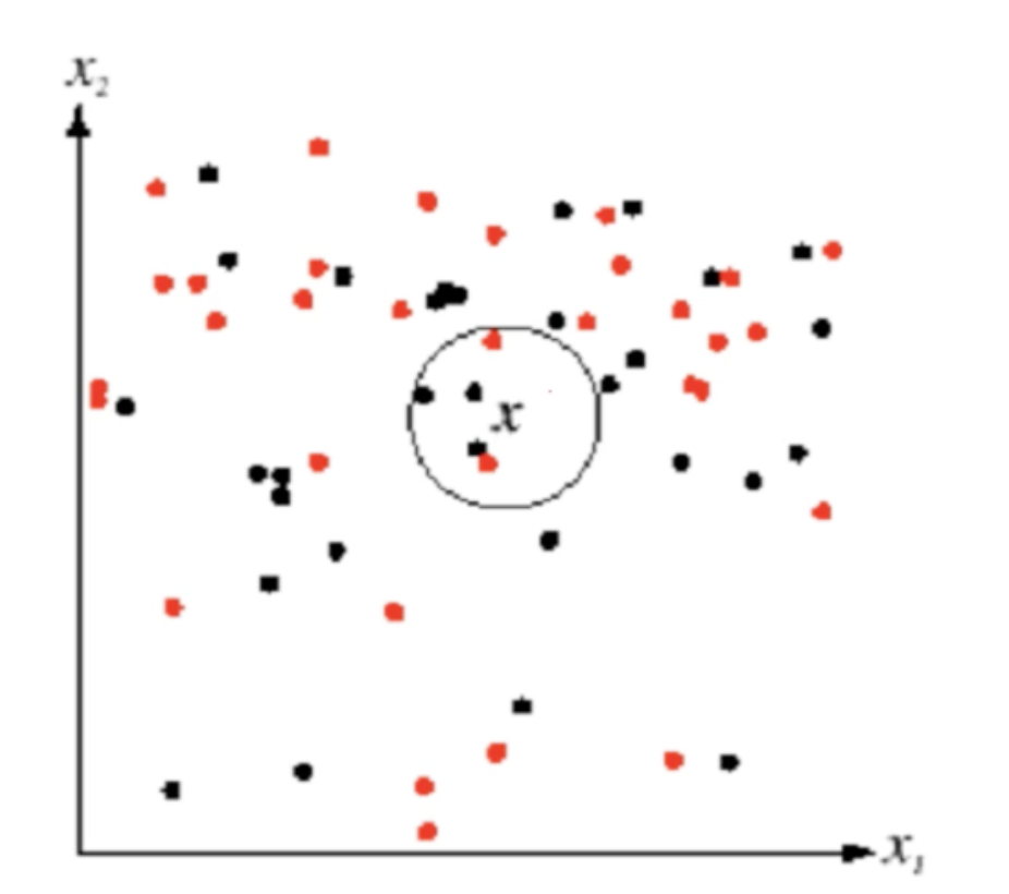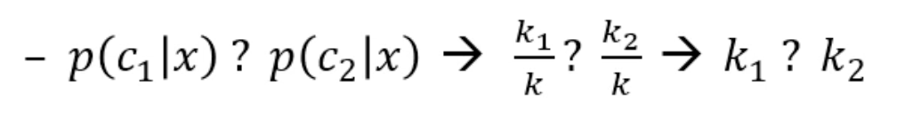 *즉 k1 ><= k2 : region 안에 더 많이 들어오는 샘플 종류에 따라서 x의 분류가 이루어진다. (region안에 x1의 수 k1, region안에 x2의 수 k2)