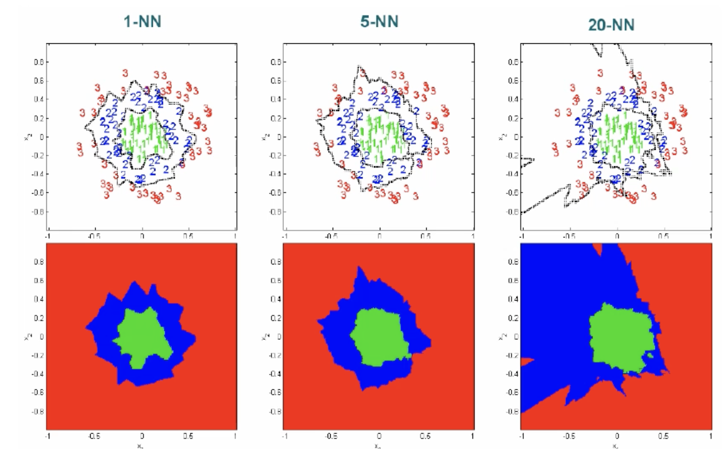 - 1-NN은 사실상 입력 값 x에서 가장 가까운 class 1개를 찾는 문제가 된다.