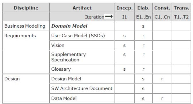 - UP의 elaboration 단계에서 Domain Model, Design Model, SW Architecture document, Data Model, Use-case 등의 artifact들이 만들어진다.