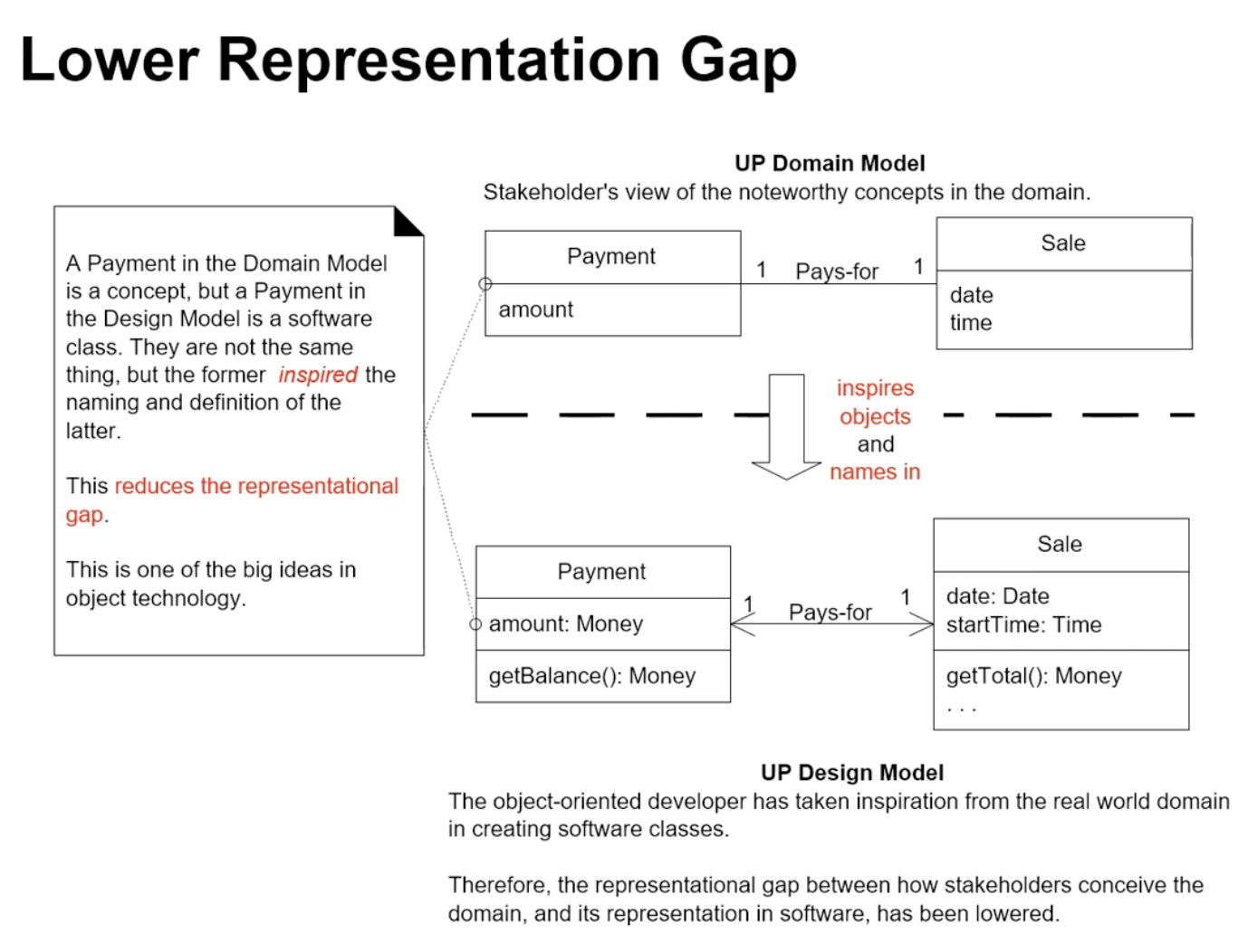 - 여기서 파악한 개념적 class들과 attribute, association이 나중에 design 작업에서 class, object 도출로 이어진다. (설계 단계에서 domain model이 영감이 된다)