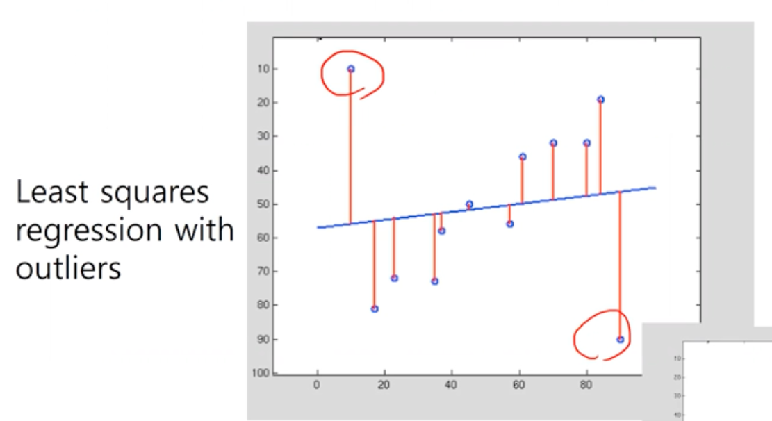 - 위에서 살펴본 Linear fitting들은 outlier에 영향을 너무 많이 받는다.