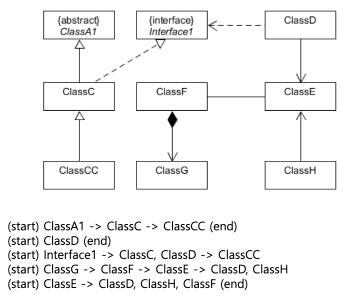 - (start) Class에서 변화가 생기면 어느 클래스까지 영향을 미칠까?를 나타낸 예시이다.
