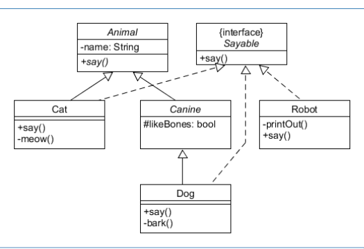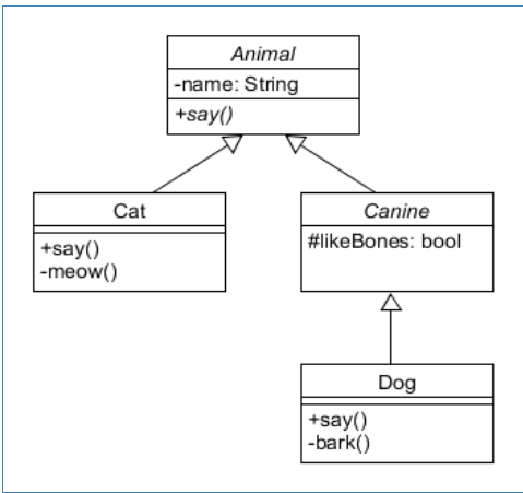 - 추상클래스 끼리는 상속할 수 있다. 여기서 추상 클래스는 Animal, Canine 두개가 있다.